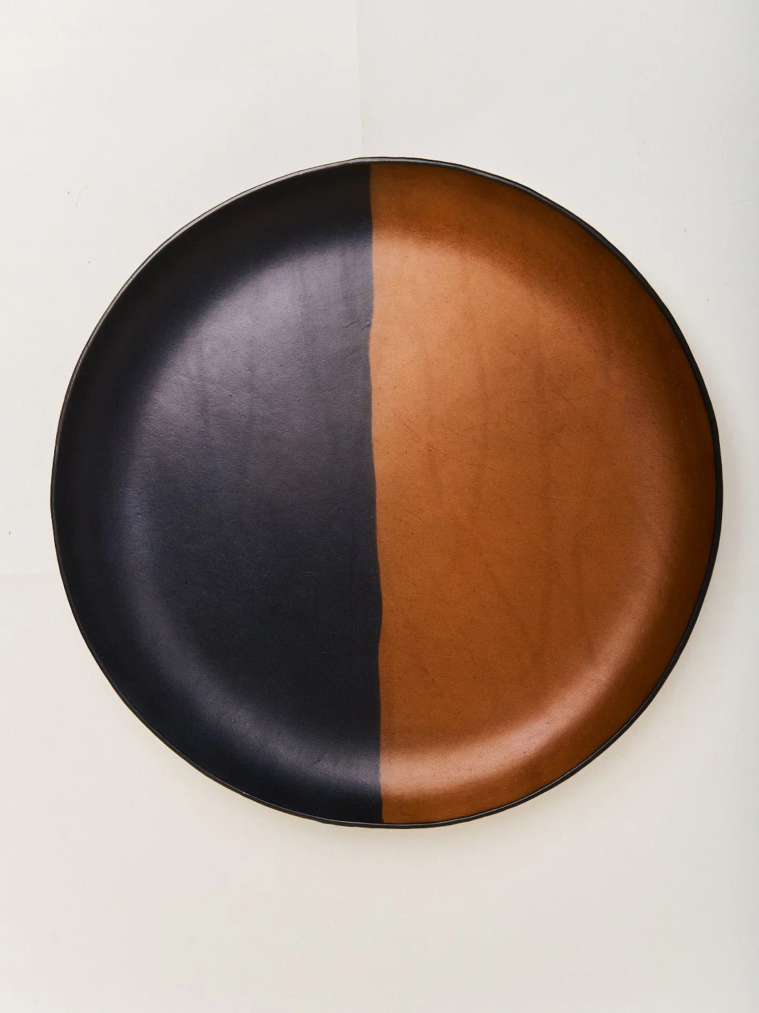 The Oversized Tray, an exquisite addition to any home decor collection. Crafted with the utmost attention to detail, this tray features a seamlessly formed circular tray that was made using a time-honored molding technique. This tray has been shaped into an organic, biomorphic silhouette that exudes a sense of elegance and sophistication. The smooth leather construction is buffed to perfection, giving the tray a luxurious finish that echoes the look of Japanese lacquer-ware. Designed by a team of skilled artisans in Colombia, this tray is a true heirloom for the home. Whether used as a centerpiece on a coffee table or to serve guests at a dinner party, the Oversized Tray will elevate your space and make a statement in your home.